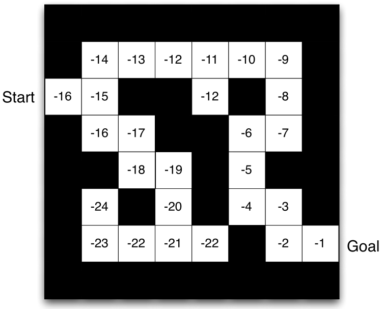 Rewards: -1 for each step until the exit.
