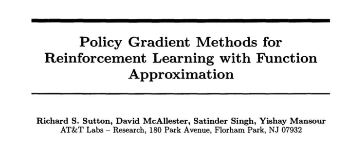 Sutton, R. S., McAllester, D., Singh, S., and Mansour, Y. (1999). Policy gradient methods for reinforcement learning with function approximation. NIPS.
