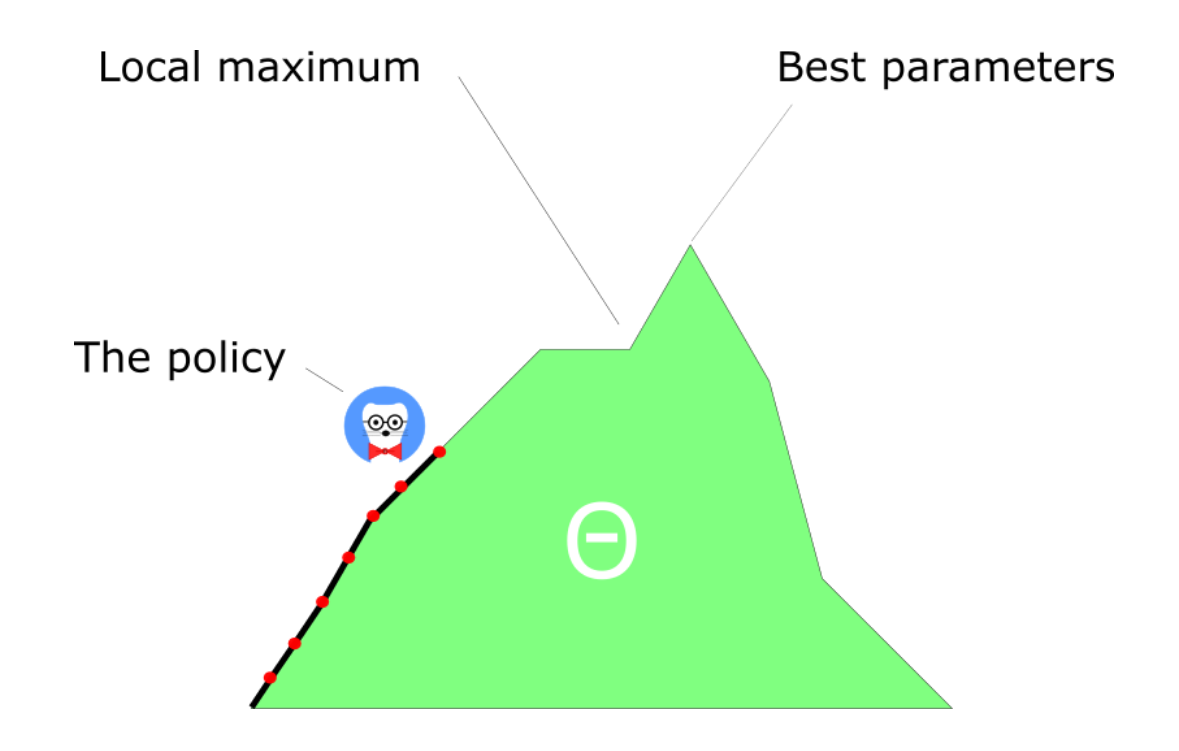 \pi_\theta(s, a) is called a parameterized policy: it depends directly on the parameters \theta of the NN.