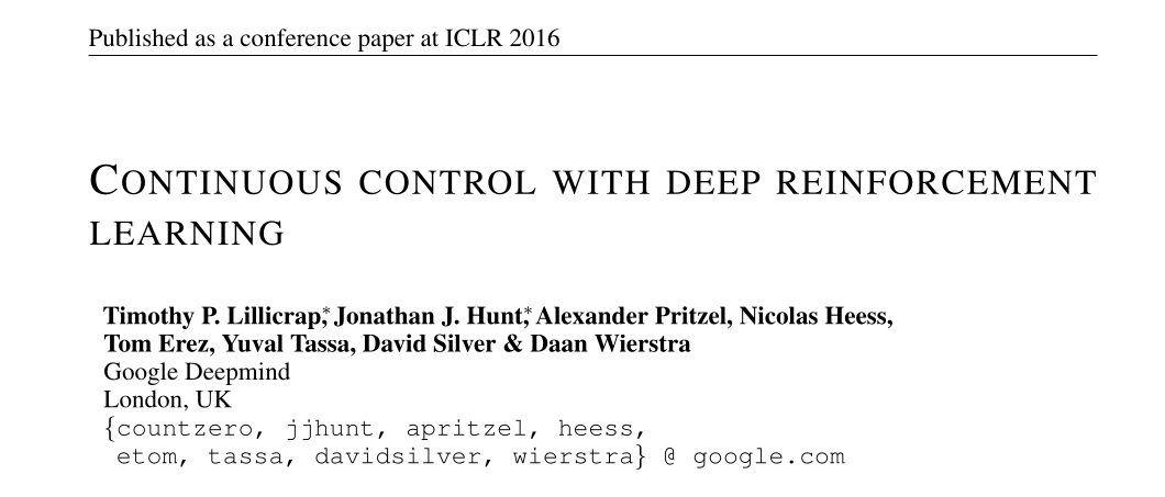 Lilicrap et al. (2016). Continuous control with deep reinforcement learning. arXiv:1509.02971