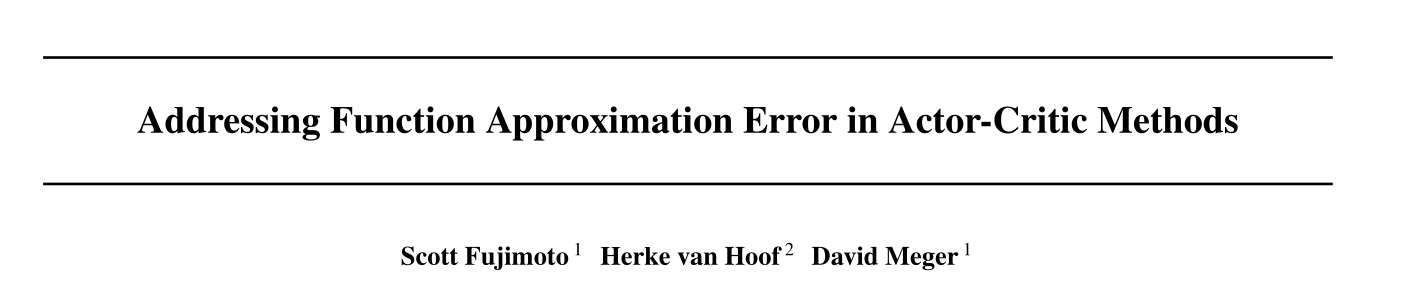 Fujimoto S, van Hoof H, Meger D. (2018). Addressing Function Approximation Error in Actor-Critic Methods. arXiv:180209477