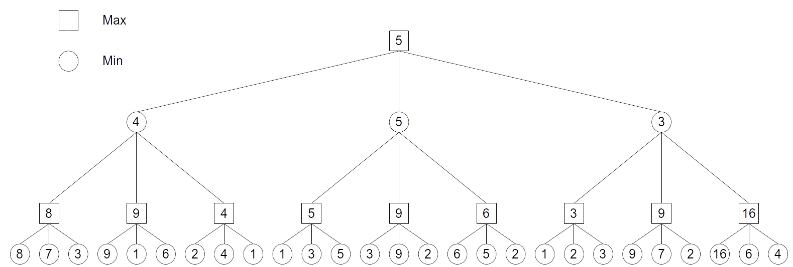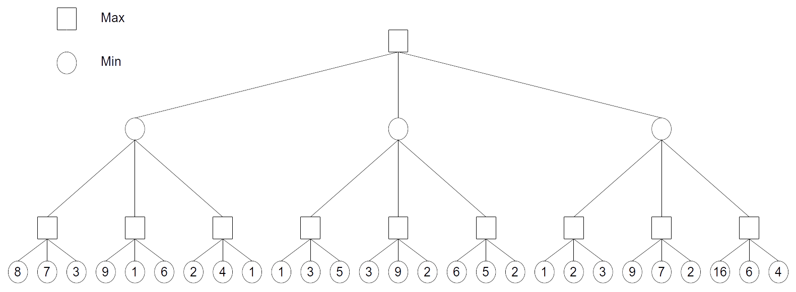 Minimax algorithm expand the whole game tree, simulating the moves of the MAX (you) and MIN (your opponent) players.