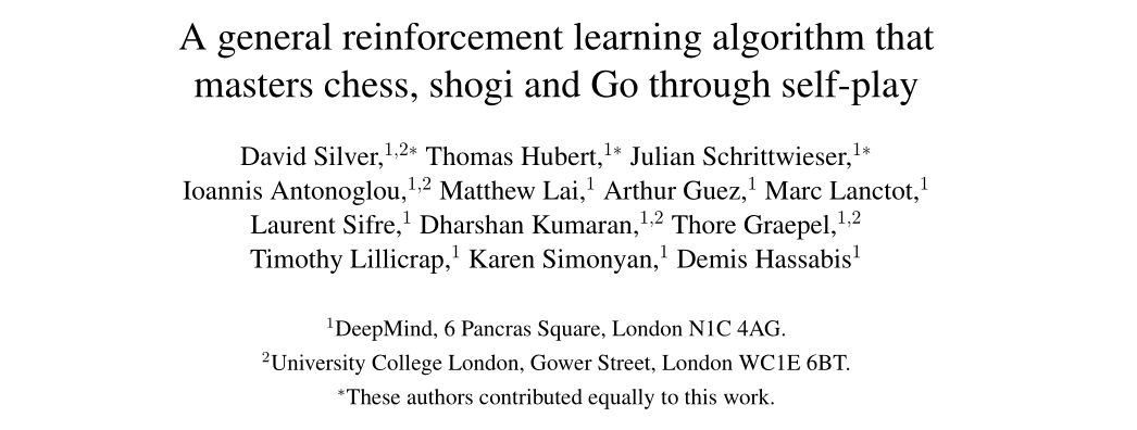 Silver et al. (2017). Mastering Chess and Shogi by Self-Play with a General Reinforcement Learning Algorithm. arXiv:1712.01815.