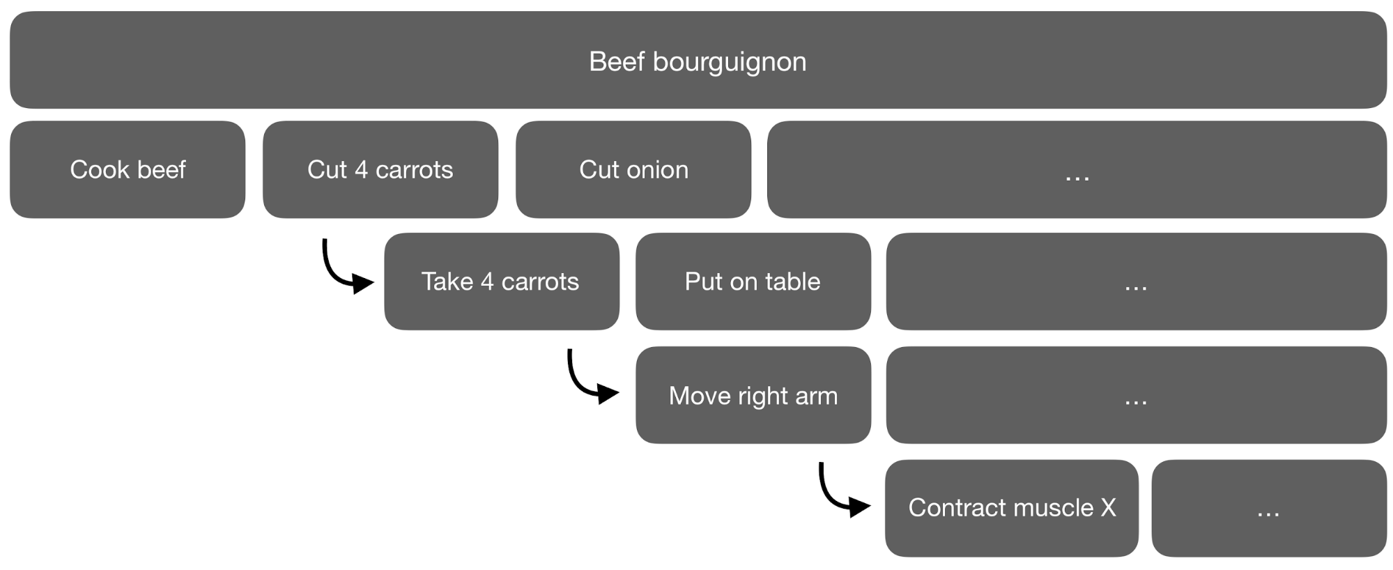 But it is not possible to learn to cook a boeuf bourguignon using muscle activations as actions.