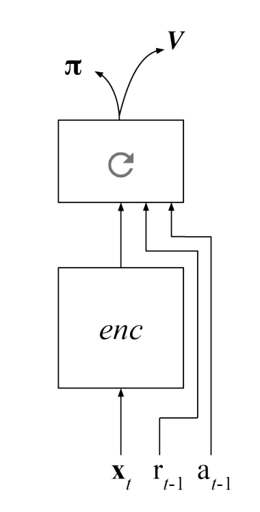 Meta RL: Wang JX, Kurth-Nelson Z, Tirumala D, Soyer H, Leibo JZ, Munos R, Blundell C, Kumaran D, Botvinick M. (2016). Learning to reinforcement learn. arXiv:161105763.